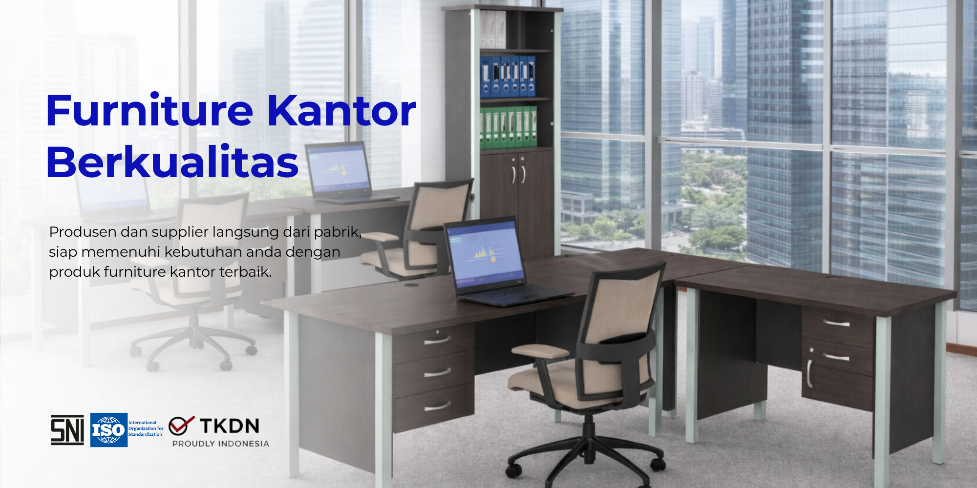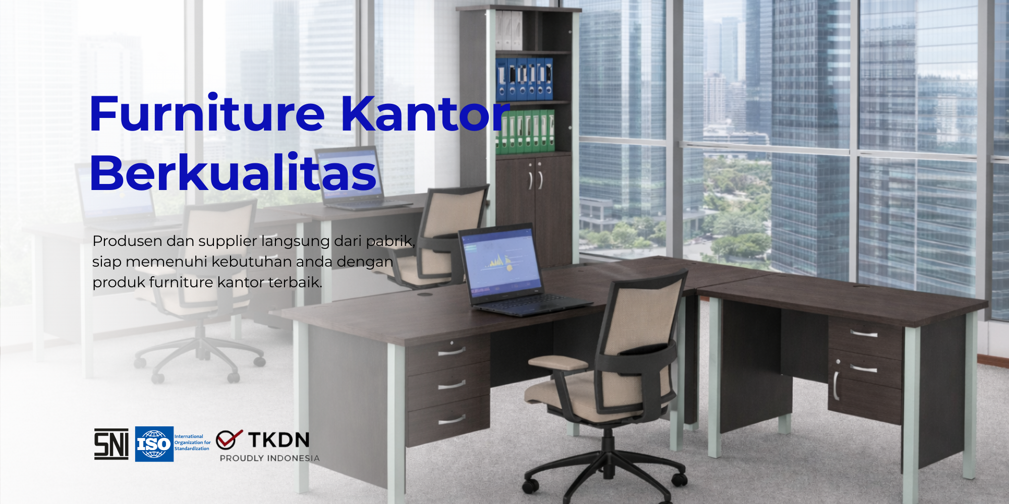 Kami adalah produsen office equipment dan office furniture sejak 1990, bersertifikat TKDN, ISO, dan SNI, dengan produk metal berfinishing powder coating serta furniture berbahan particle board dan MDF, melayani pasar nasional hingga ekspor.